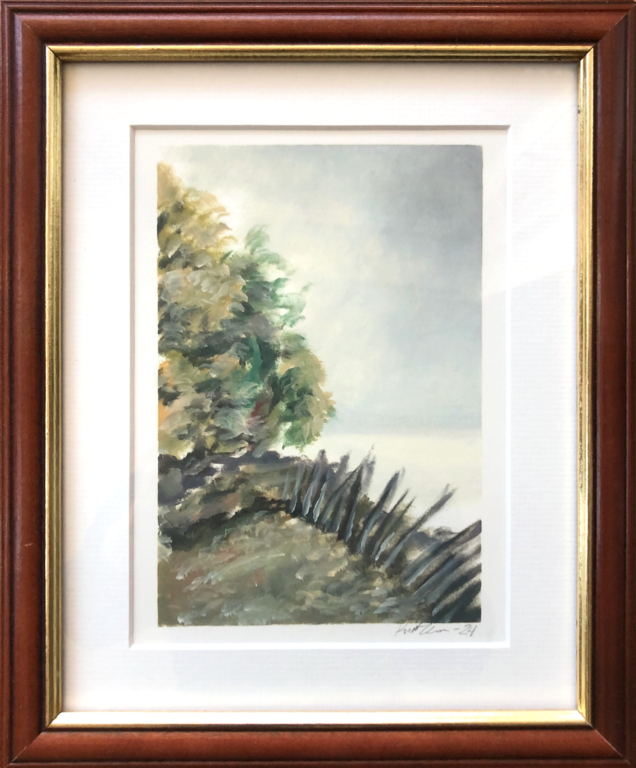 En liten skisse med olje på papir. Syrefritt Arches papir, 300 gram, 15 x 21 cm. Bruttomål med ramme: 24 x 29 cm.